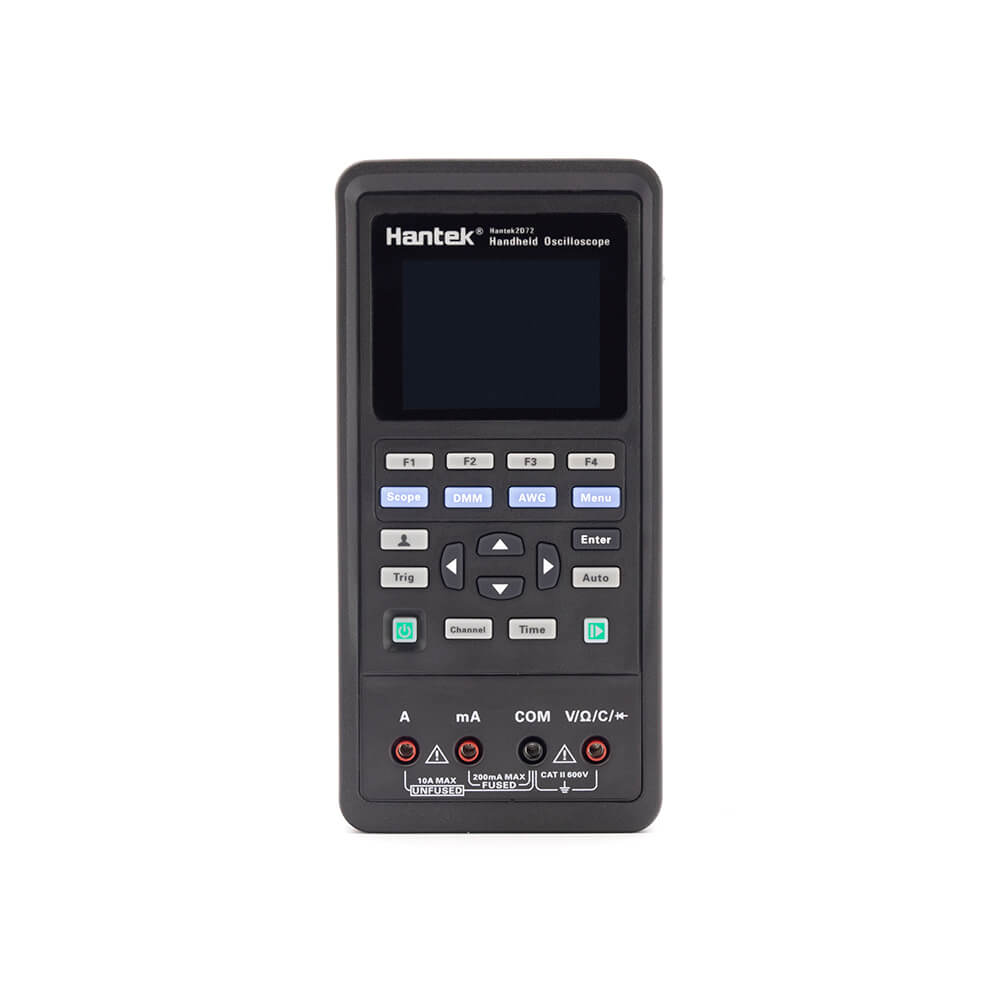 Осциллограф портативный Hantek 2D72 3-в-1 (2 канала, 70 МГц, осциллограф, мультиметр и генератор сигналов) - удобный и недорогой измерительный прибор с функциональным генератором и стандартным набором функций. Читабельный дисплей информативен, а большой клавиатурный блок не вызывает трудностей при работе с прибором. Возможность подключения к ПК позволяет рассматривать вариант прошивки и доработки устройства по своему усмотрению. Специальная подставка предназначена для установки устройства в удобном для пользователя положении. Комплект предусматривает 4 типа щупов, СЗУ с проводом и инструкцию пользователя. Фирменная сумка органайзер обеспечивает удобство транспортировки.